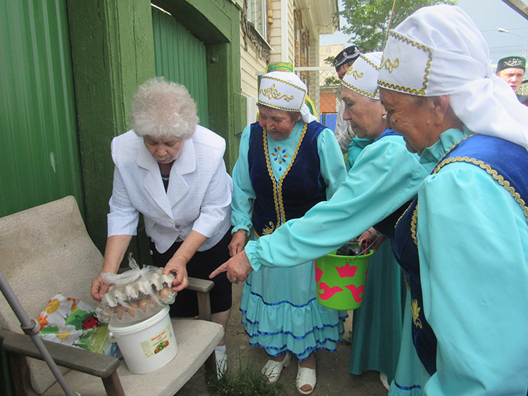 Һәрвакыттагыча газетада белдерү чыгу белән үк иң беренче редакциягә Гадилә апа Харисова иң арттан килгән атка дип, бүләк алып килә. Быел да аның аягы җиңел булды, бик күп газета укучы апаларыбыз редакциягә бүләк китерде. Ел саен бүләк җыю гадәткә кергәч, безне урамнарда милләттәшләребез әзерләнеп көтеп торалар. Әнә Әлфия апа яшь чагында үзе чиккән тастымалын алып чыккан. Элек Сабантуйларда бүләккә туку станокларында тукылган сөлгеләр биргәннәр. ХХ гасыр башларында ул бик затлы бүләк саналган. 50-60нчы елларда аның урынына метрлы тукымалар бирелә башлаган. Элек ул бик яраган, ул вакытта киемнәрне тектереп кигәннәр. Яулыклар, оекларны бүгенге көндә дә бирәләр. Халык сандык төбенә үлемтеккә дип салып куйган нафталин исе килеп торган метрлы тукымалар, яулыклар бирәләр дип, без бер дә аптырамыйбыз, киресенчә куанып алабыз. Алар — безнең тарихыбыз. Сабантуенда кулланылмаган әлеге әйберләрне без төрле чаралар уздырганда кулланабыз. Спектакль куйганда да, күргәзмәләр эшләгәндә дә, шул ук Сабан туена сөлге бәйли торган колга башына да бәйләп куеп була бит аларны. Фәйрүзә апа Мансурова Актаныш районныннан алып килгән йомыркаларын әзерләгән. Ерактан яңгыраган гармун тавышына йорт төзүче ир-атлар да чыгып, тиз генә бүләк әзерләп тапшырдылар. Димәк, халкыбыз гореф-гадәтләребезгә битараф түгел, Аллага шөкер!