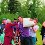 оештыручылар, яңгырга чыланып, манма су булсак та, әзерләнүдән туктамадык. Ходай Тәгаләнең рәхмәте киң һәм кодрәтле! Бәйрәм башланыр алдыннан ялтырап кояш чыкты! Көн буена безгә Сабантуйны матур итеп үткәрергә вакыт бирде. Милли бәйрәмебез ахырына якынлашканда, кабат коеп яңгыр яварга тотынды. Кичке Сабантуйга күк йөзе ачылып, бәйрәмебез дәвам итте.